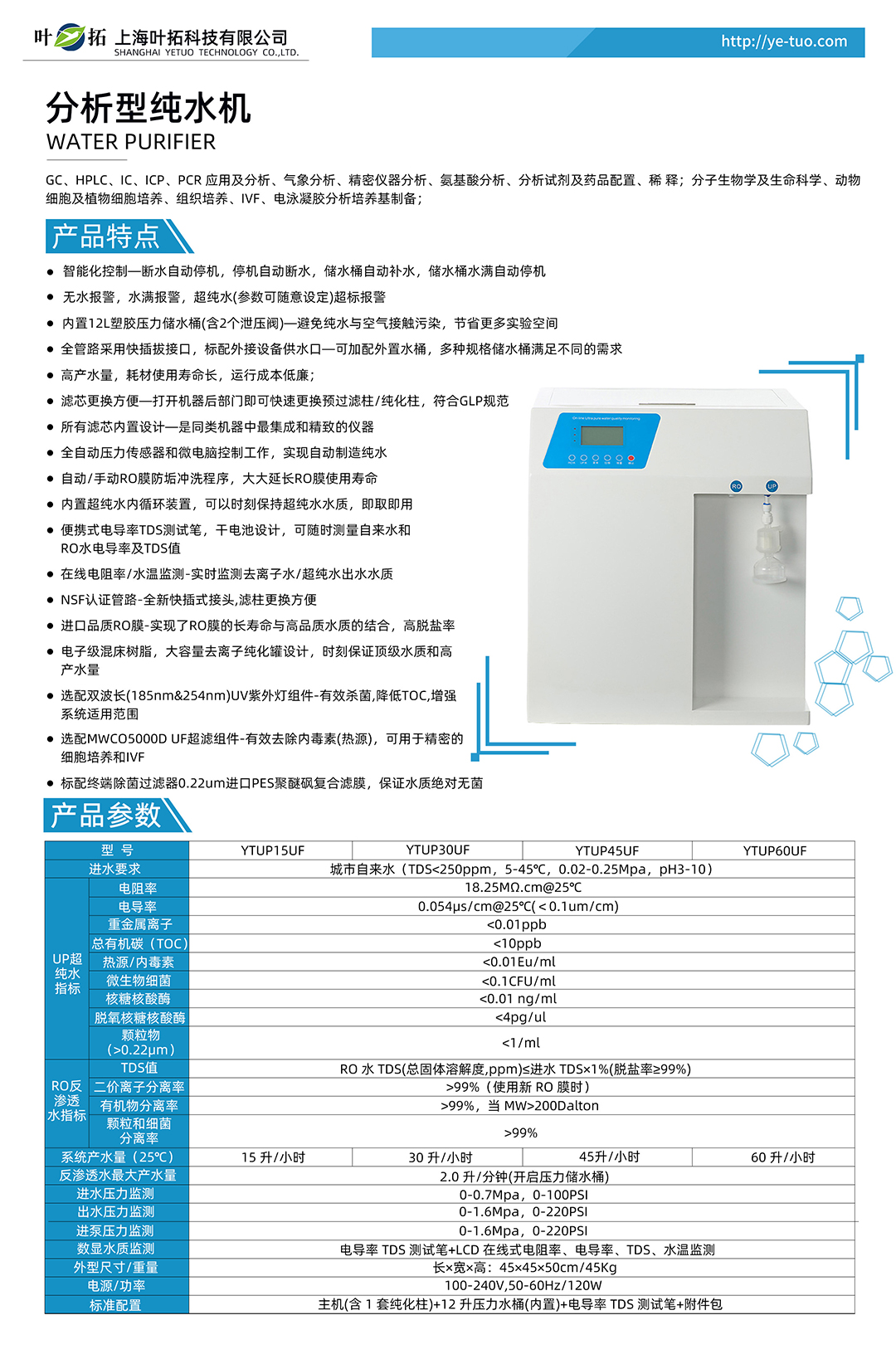 - 內(nèi)置超純水內(nèi)循環(huán)裝置,可以時刻保持超純水水質(zhì),即取即用