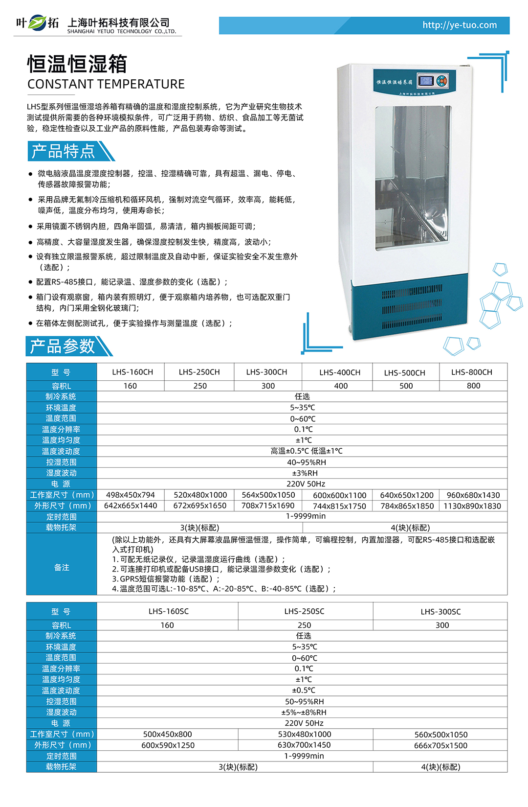 上海葉拓 LHS系列 恒溫恒濕培養(yǎng)箱