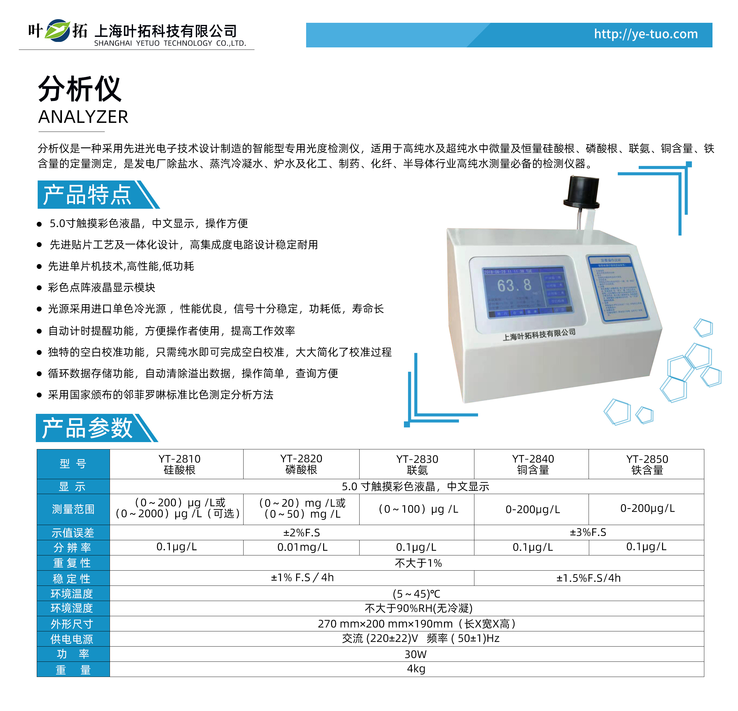 采用先進光電子技術設計制造的智能型專用光度檢測儀,適用于高純水及超純水中微量及恒量磷酸根的定量測定。