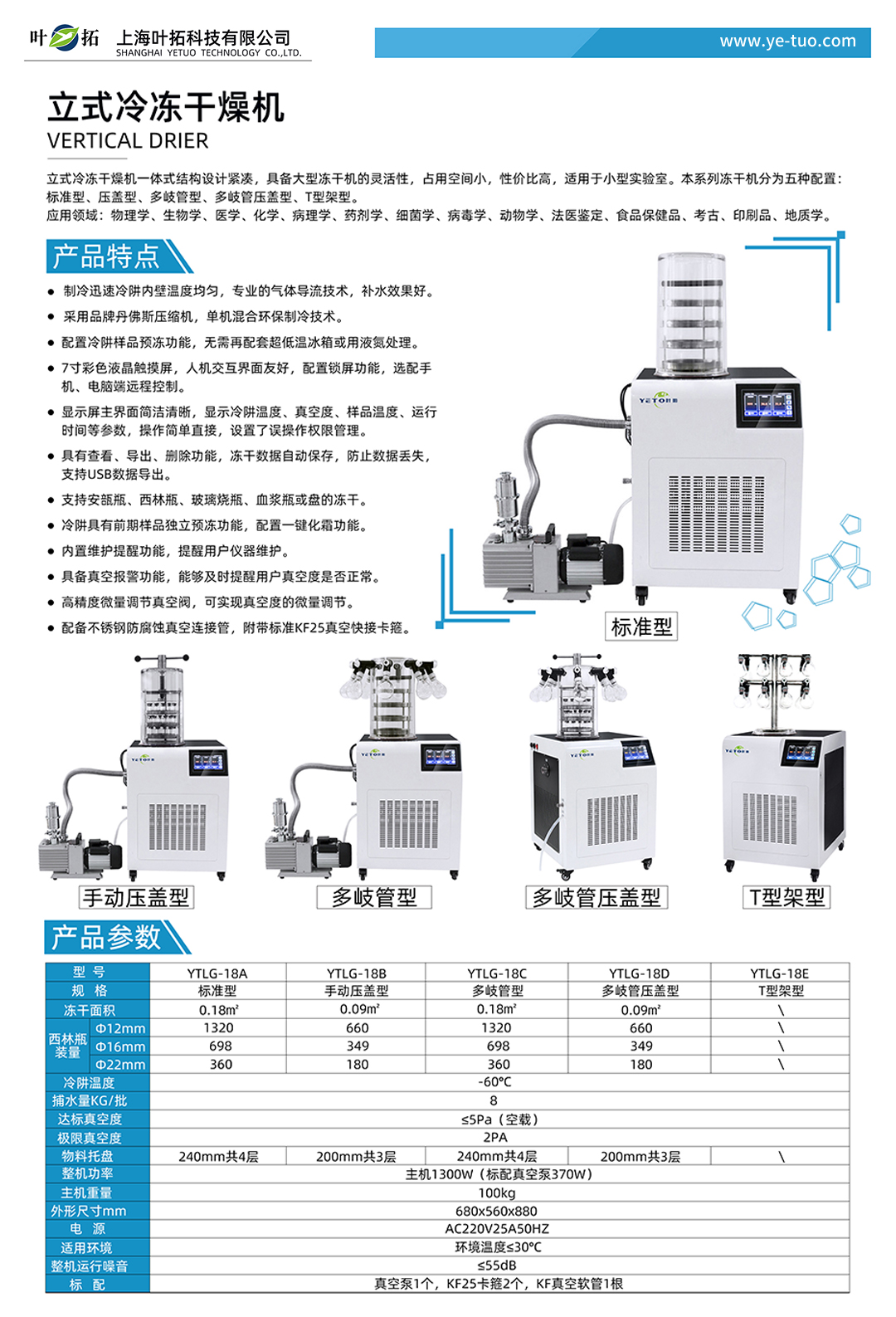 【官網】上海葉拓 YTLG-18系列 凍干機 臺式真空冷凍凍干機