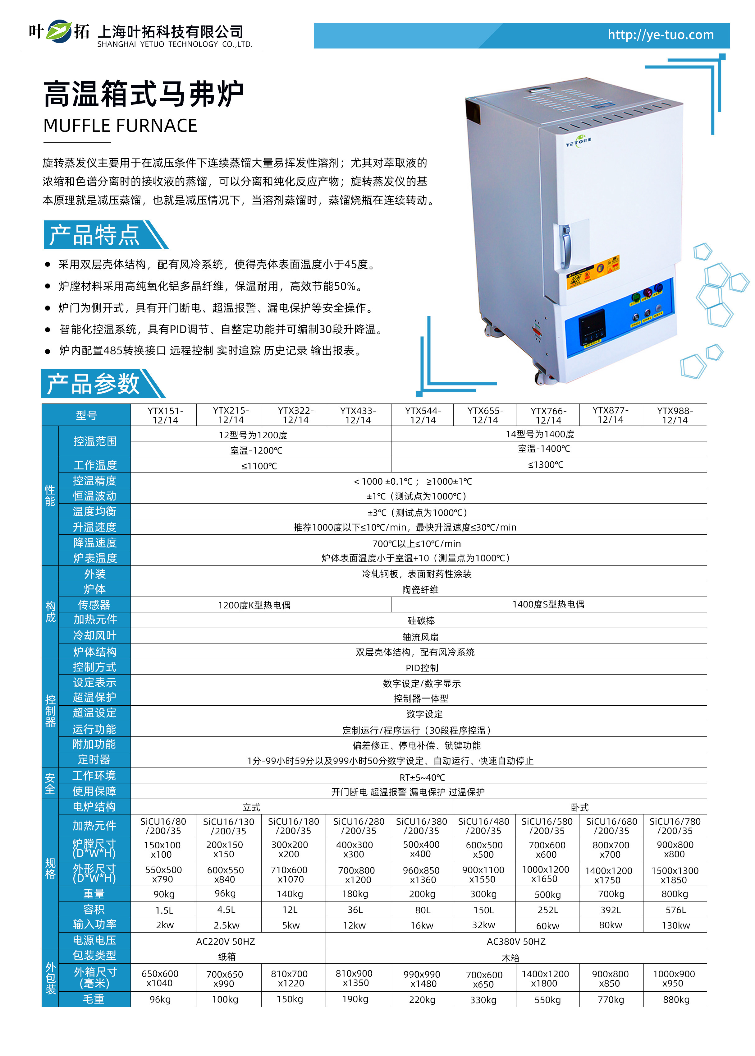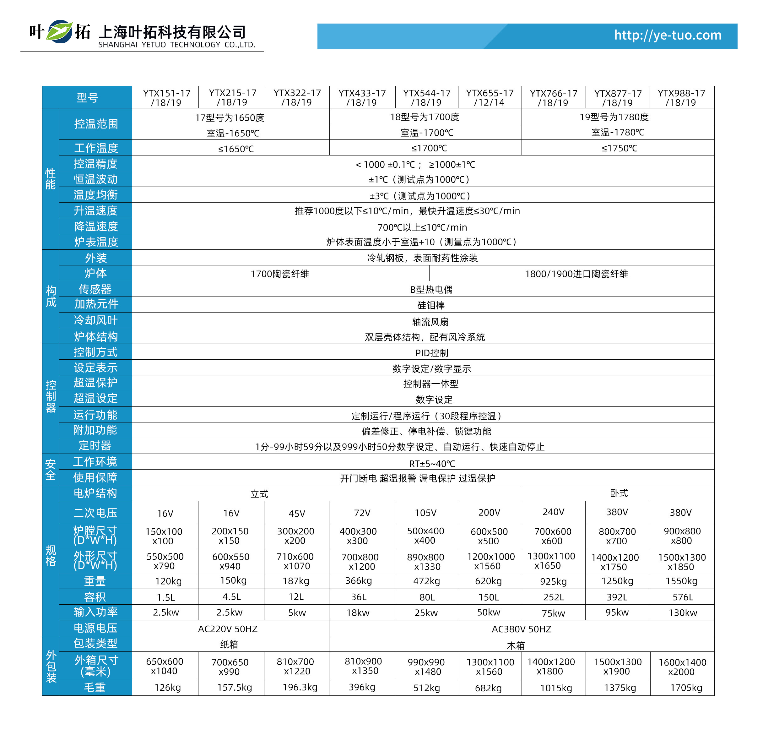 葉拓YTX系列箱式高溫爐產(chǎn)品特點(diǎn)